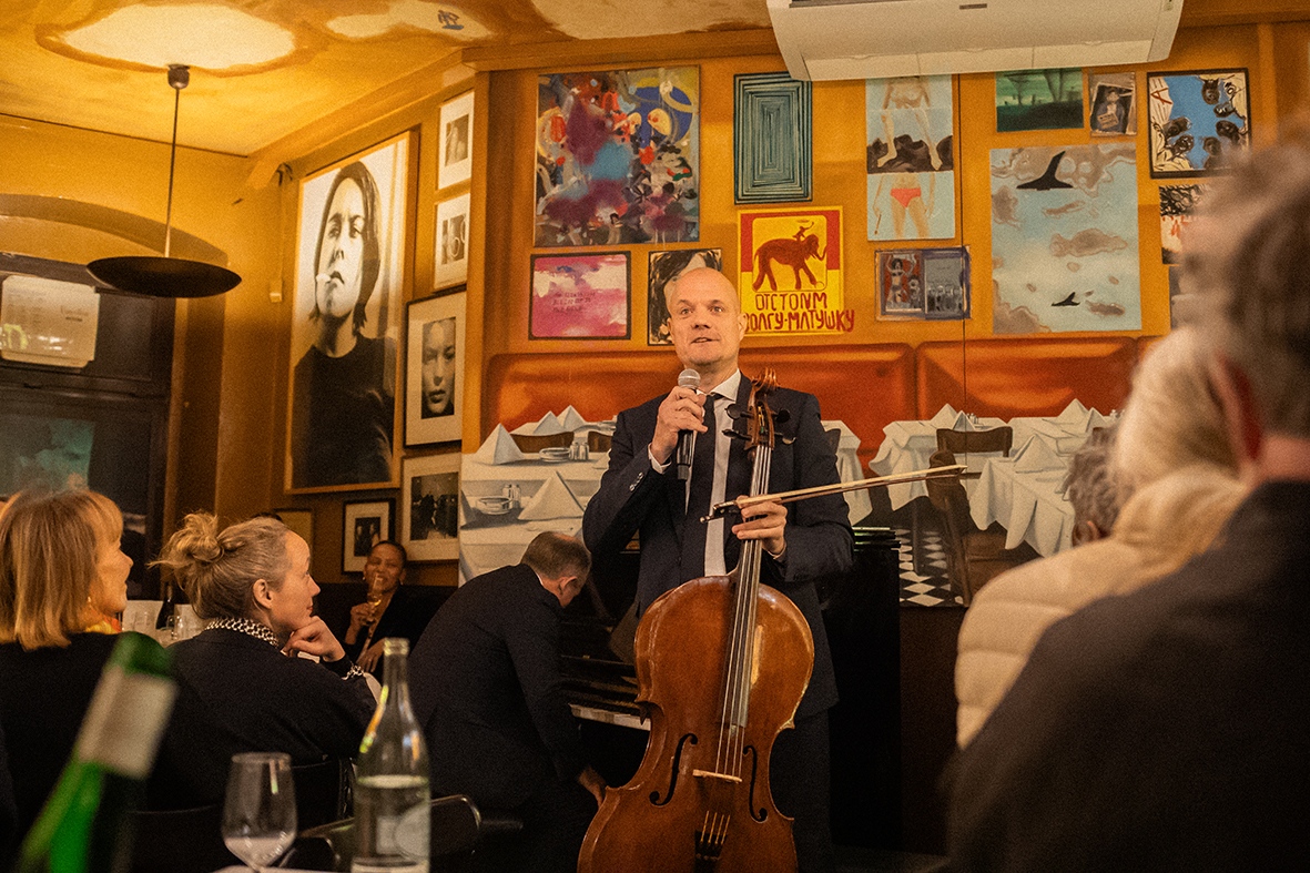 Rebecca und Peter Raue sowie unser Kuratoriumsmitglied John Hartung bereicherten den Abend mit sehr persönlichen und bewegenden Worten. Musikalisch begleitet wurde die Feier vom Ammon-Duo, dessen einfühlsame Darbietungen zur besonderen Atmosphäre beitrugen – ganz im Sinne dessen, was Folker liebte und lebte.